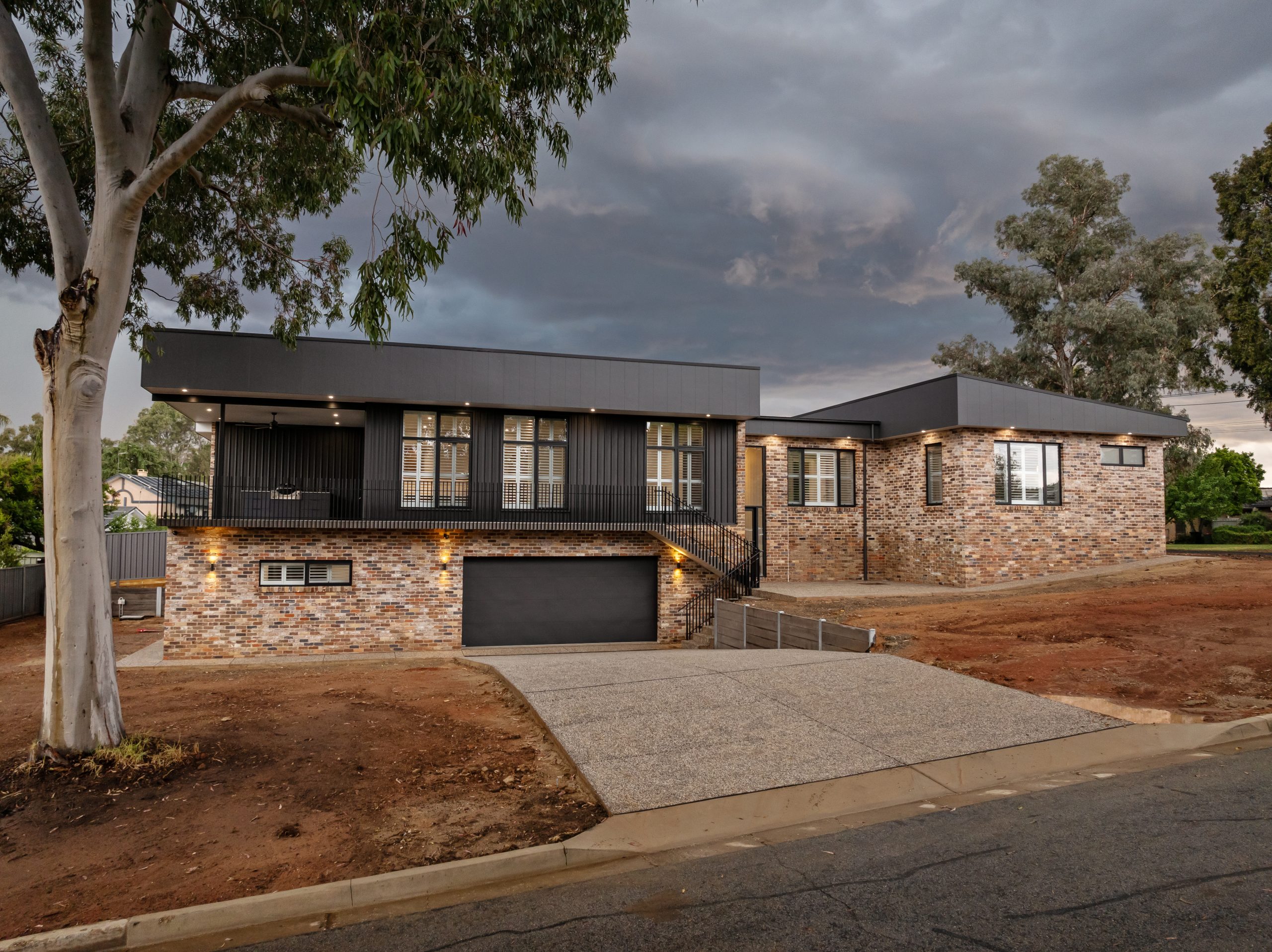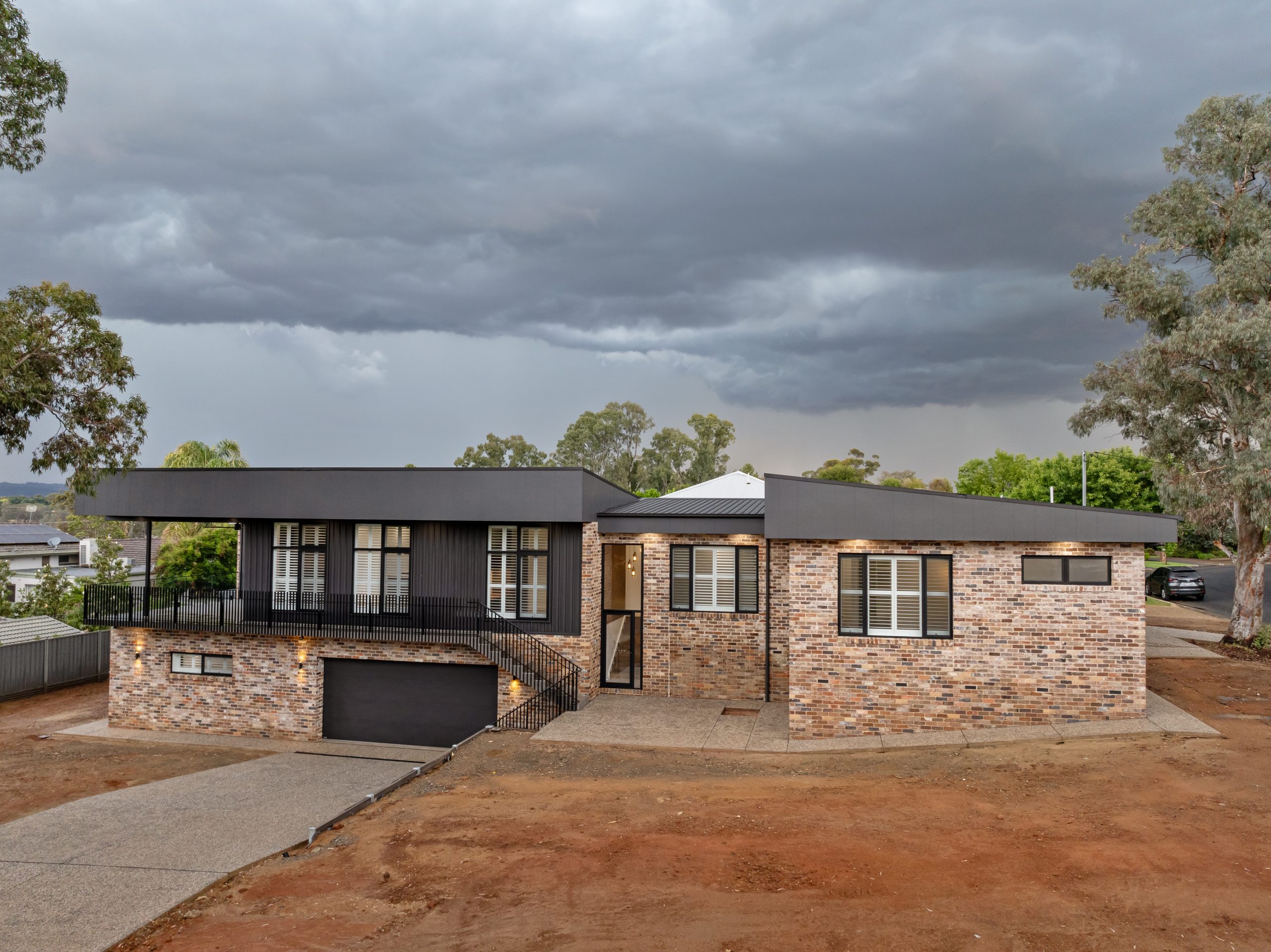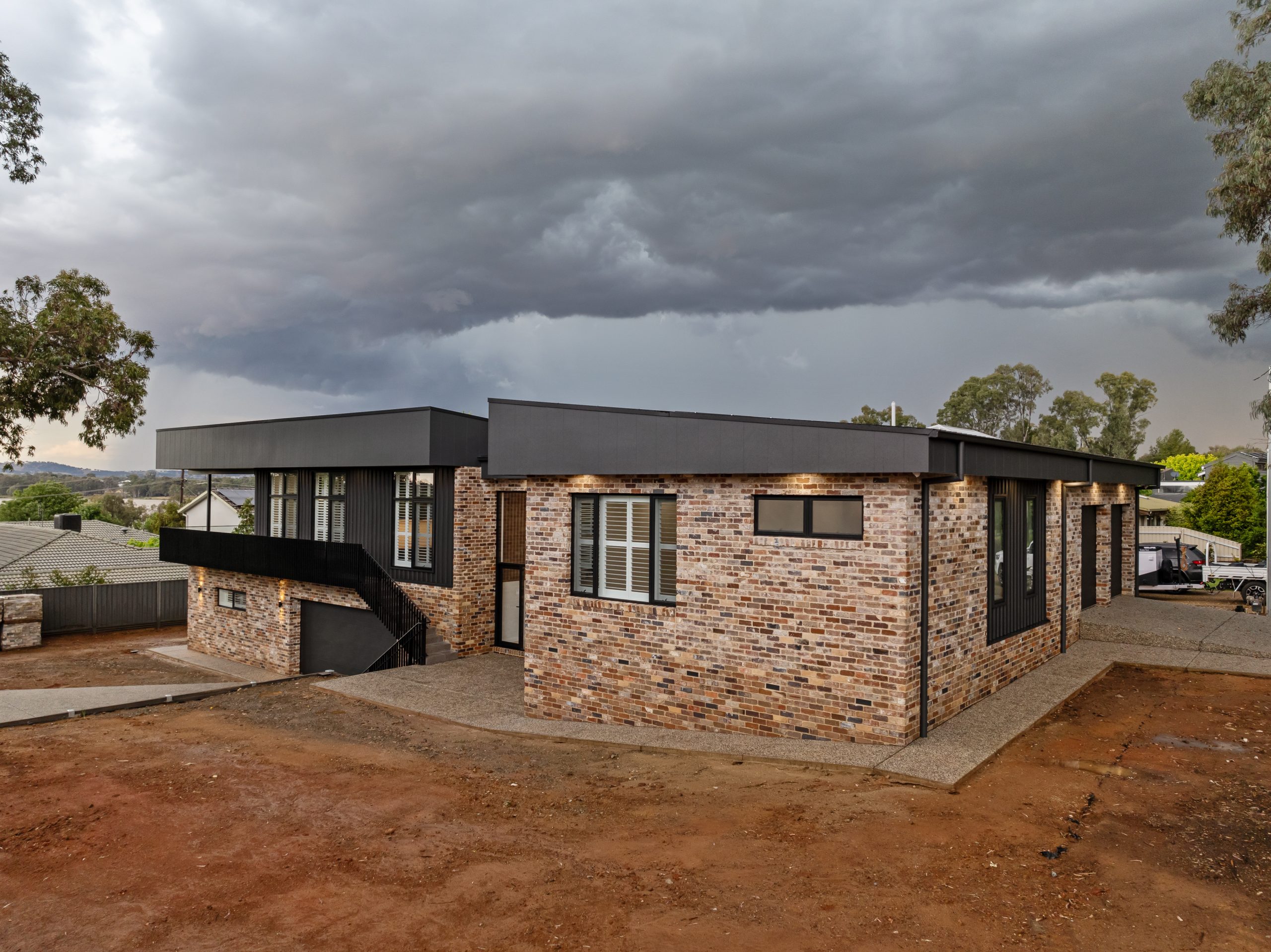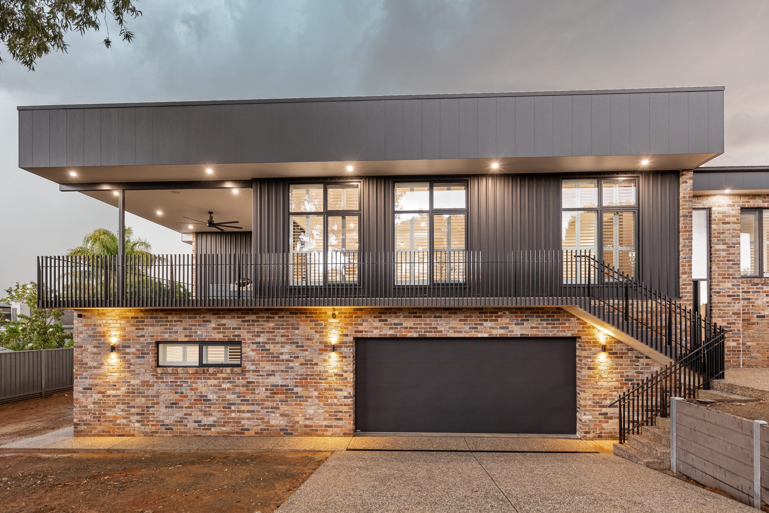 Recycled brick, Colourbond Matte Monument, James H Recycled brick, Colourbond Matte Monument, James Hardie axon Cladding and architectural steel handrail……… YES PLEASE!!