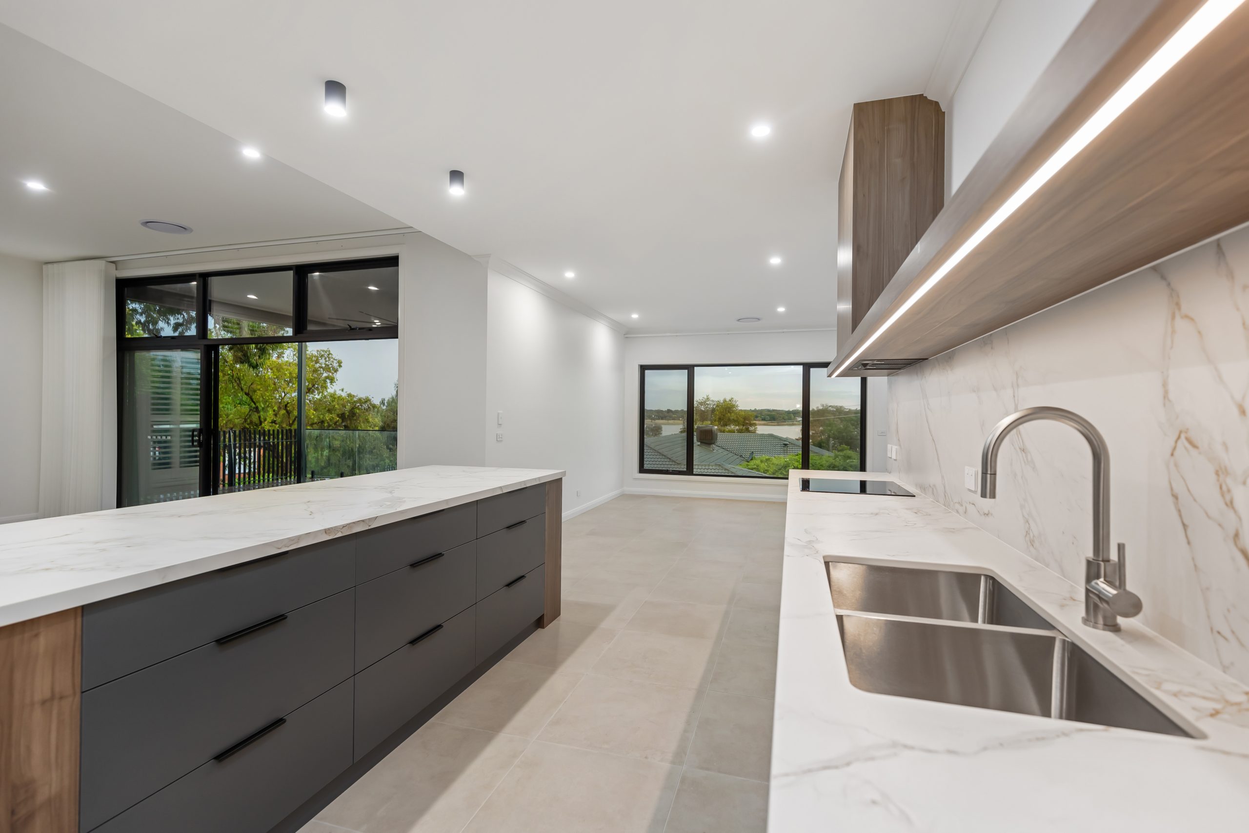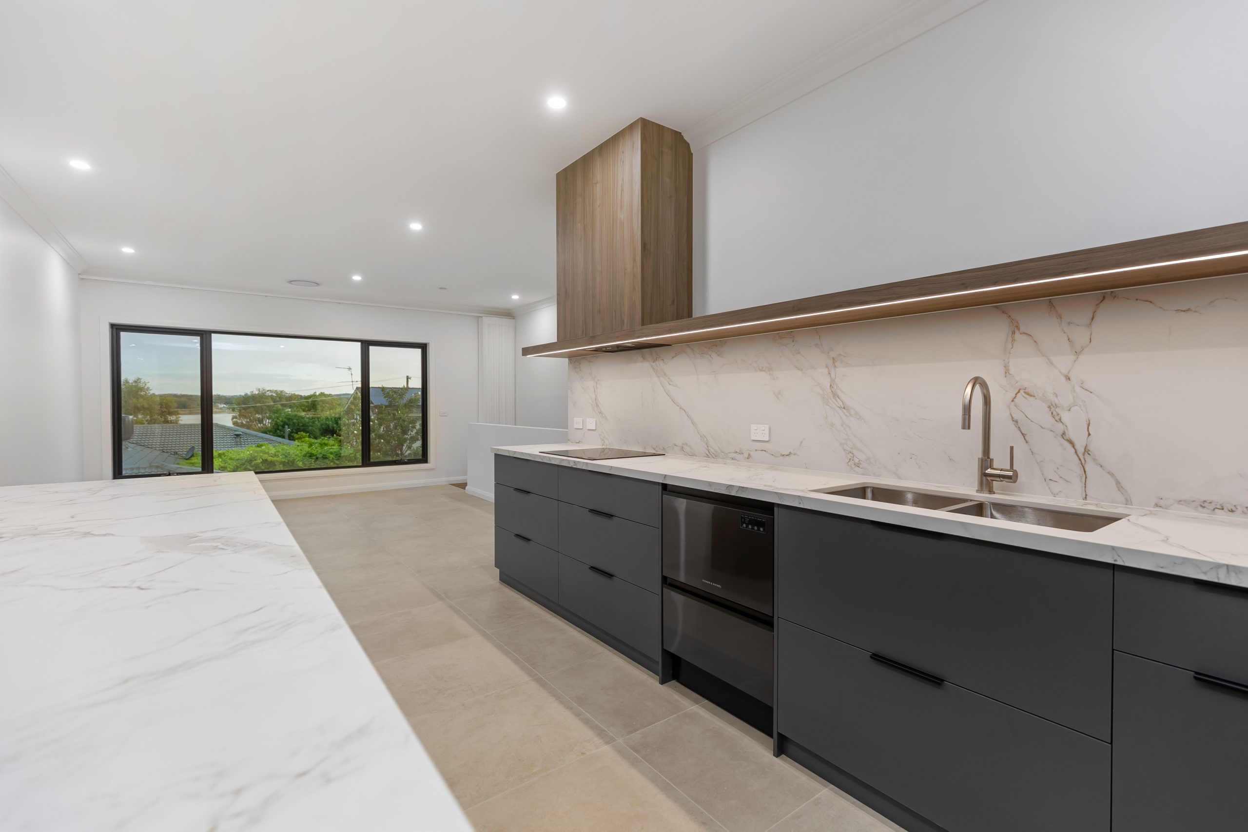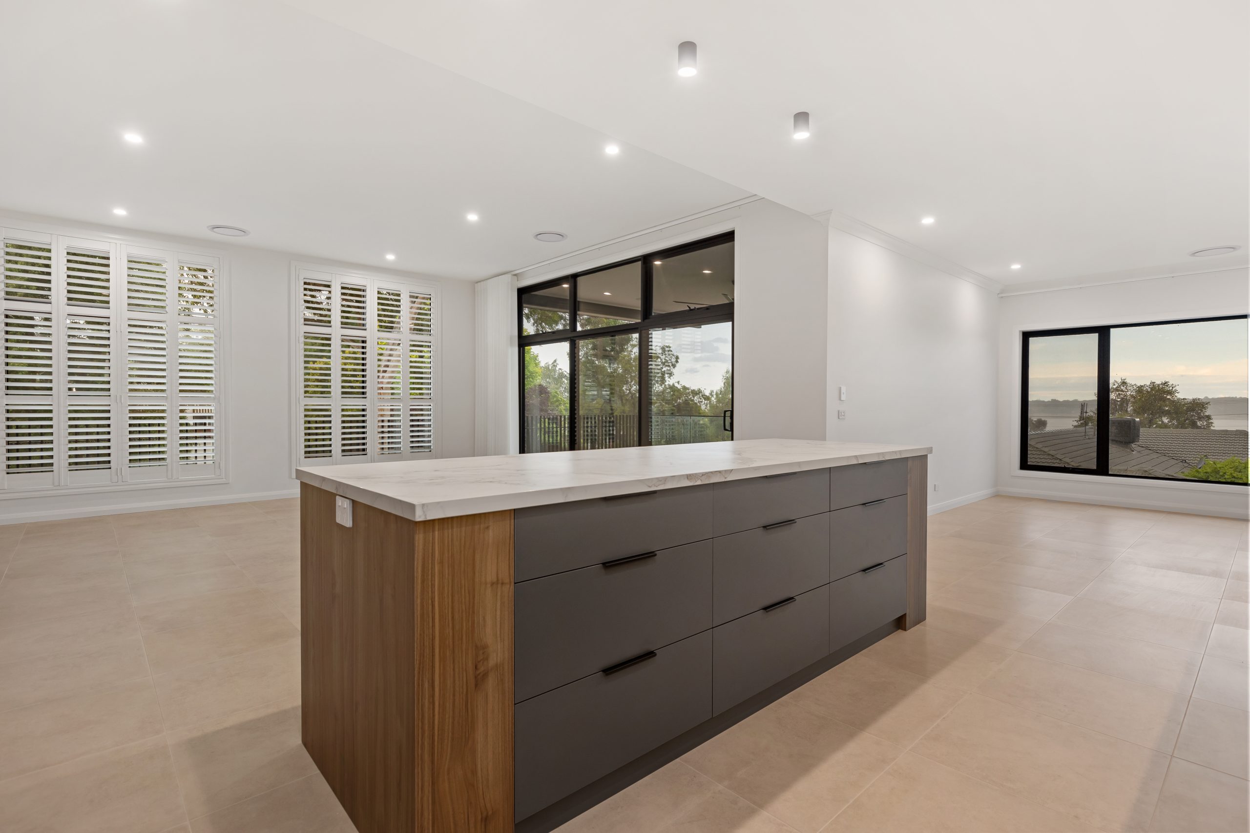 A big congratulations to the clients of this amazing new home! We had the pleasure of handing the keys over last week and we are absolutely thrilled with the end result. This block had an existing house on there that was knocked over and we worked with the clients and draftsman to design a house that would maximise the views of the Lake but also using the northern aspect to gain as much natural light possible into the main living areas.